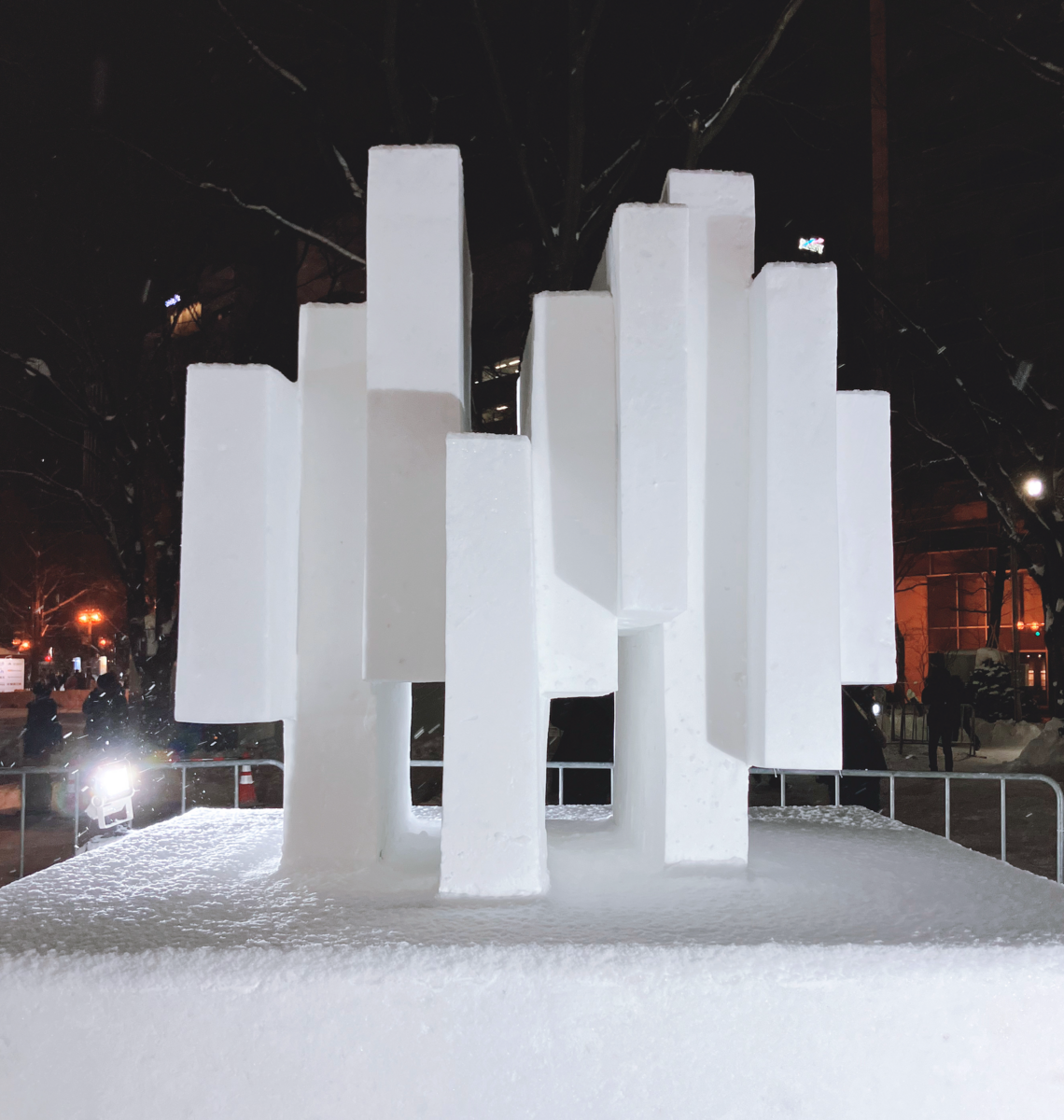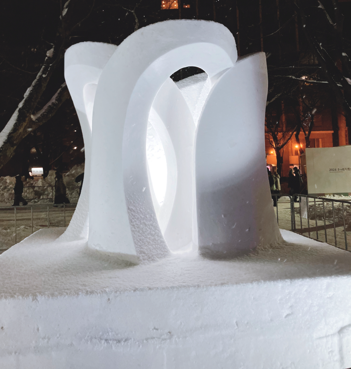 雪でこんな造形できるんだ。すごい。重力ガン無視じゃん。雪像の可能性は無限大だ。メビウスの輪も作れそう。